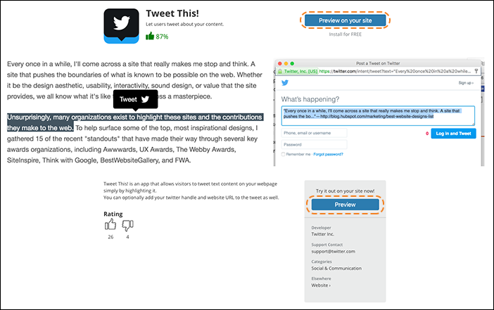 Inside the preview, you will have the opportunity to choose the options which suit you and potentially create an account with the service which powers the App, if applicable. The preview you see on the right side will match how the App will perform on your site if you choose to install it.